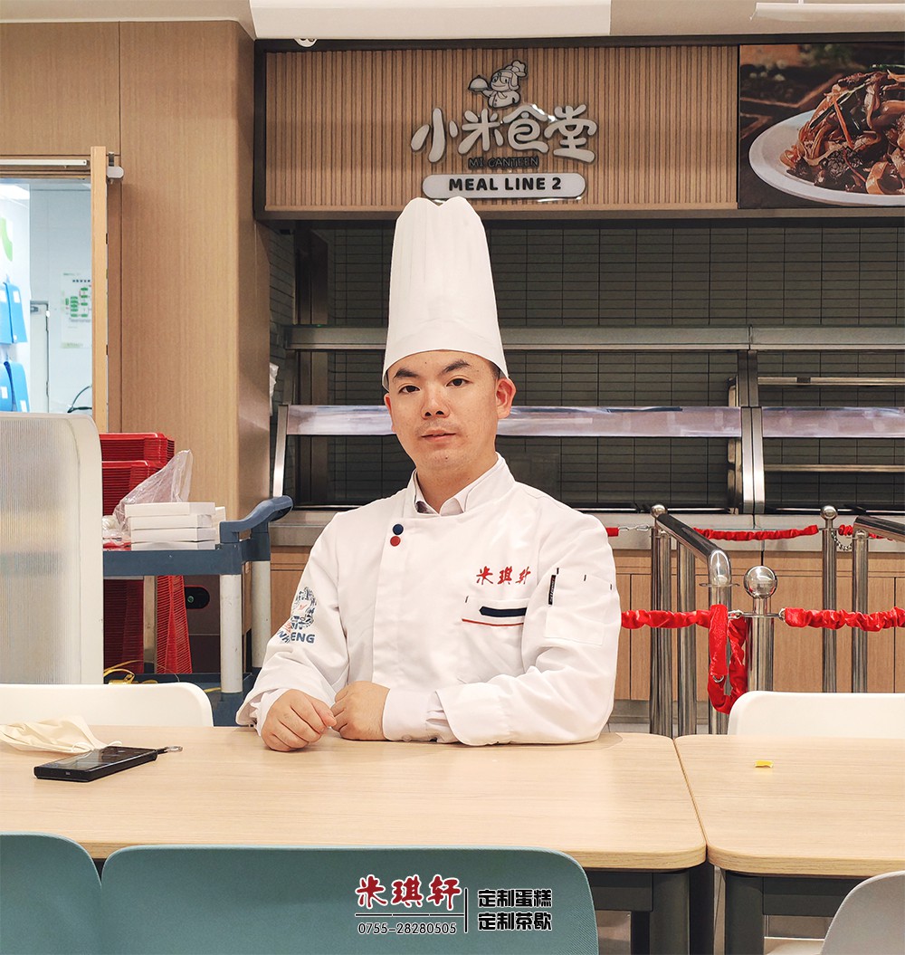 作为深耕企业庆典烘焙定制、主题场景蛋糕设计的品牌,米琪轩此次由首席设计总监亲临小米食堂,全程参与现场制作 —— 从奶油裱花到主题图案还原,实现了 “定制化设计 + 现场沉浸式呈现” 的服务模式,这也是米琪轩高端烘焙定制、场景化烘焙服务的典型业务落地案例。